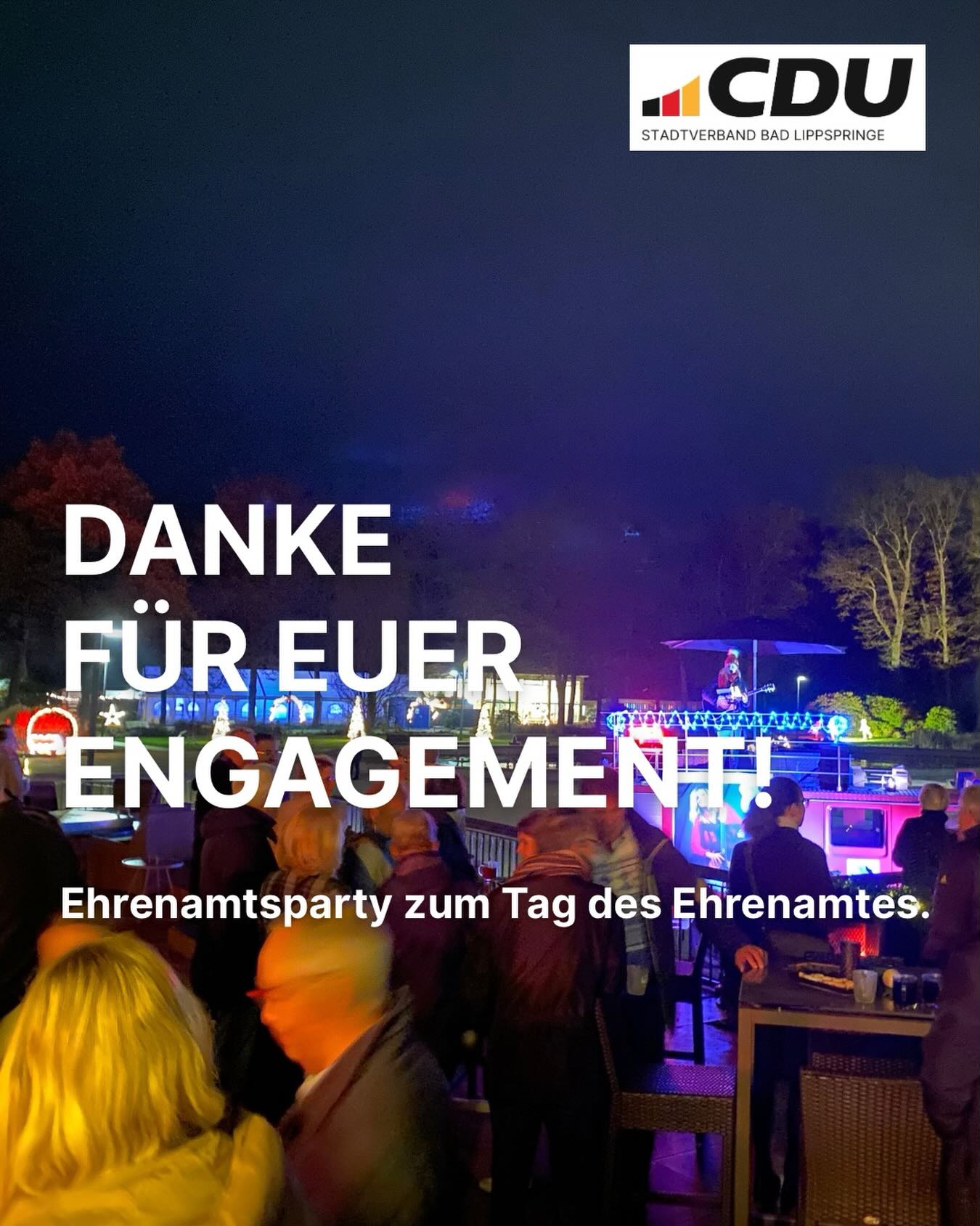 Gestern war der Tag des Ehrenamtes. Auch bei uns in Bad Lippspringe ist das Ehrenamt eine essenzielle Stütze unserer Gesellschaft. Daher freut es uns, dass den vielen engagierten Menschen, gestern mit einer Ehrenamtsparty im @park_hotel gedankt wurde. 😃🚀 Auch wir sagen ein großes Dankeschön für eure ehrenamtliche Arbeit und euer Engagement. 🙏 #ehrenamt #badlippspringe #cdubadlippspringe #cdu